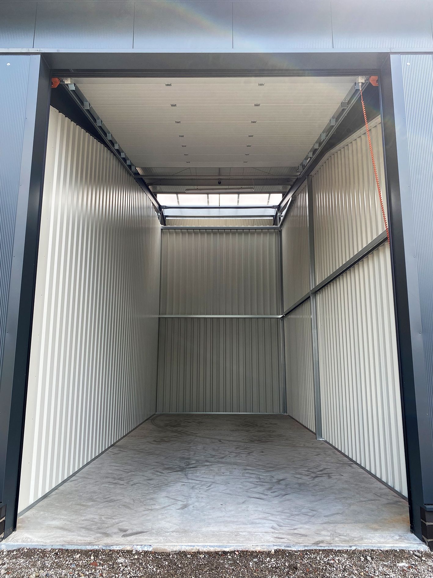 Die Lagereinheiten verfügen jeweils über ein oder ggf. mehrere elektr. Sektionaltore, die per Funksender gesteuert werden, Beleuchtung sowie Strom (230 V) und Kraftstromanschluss (16 A).